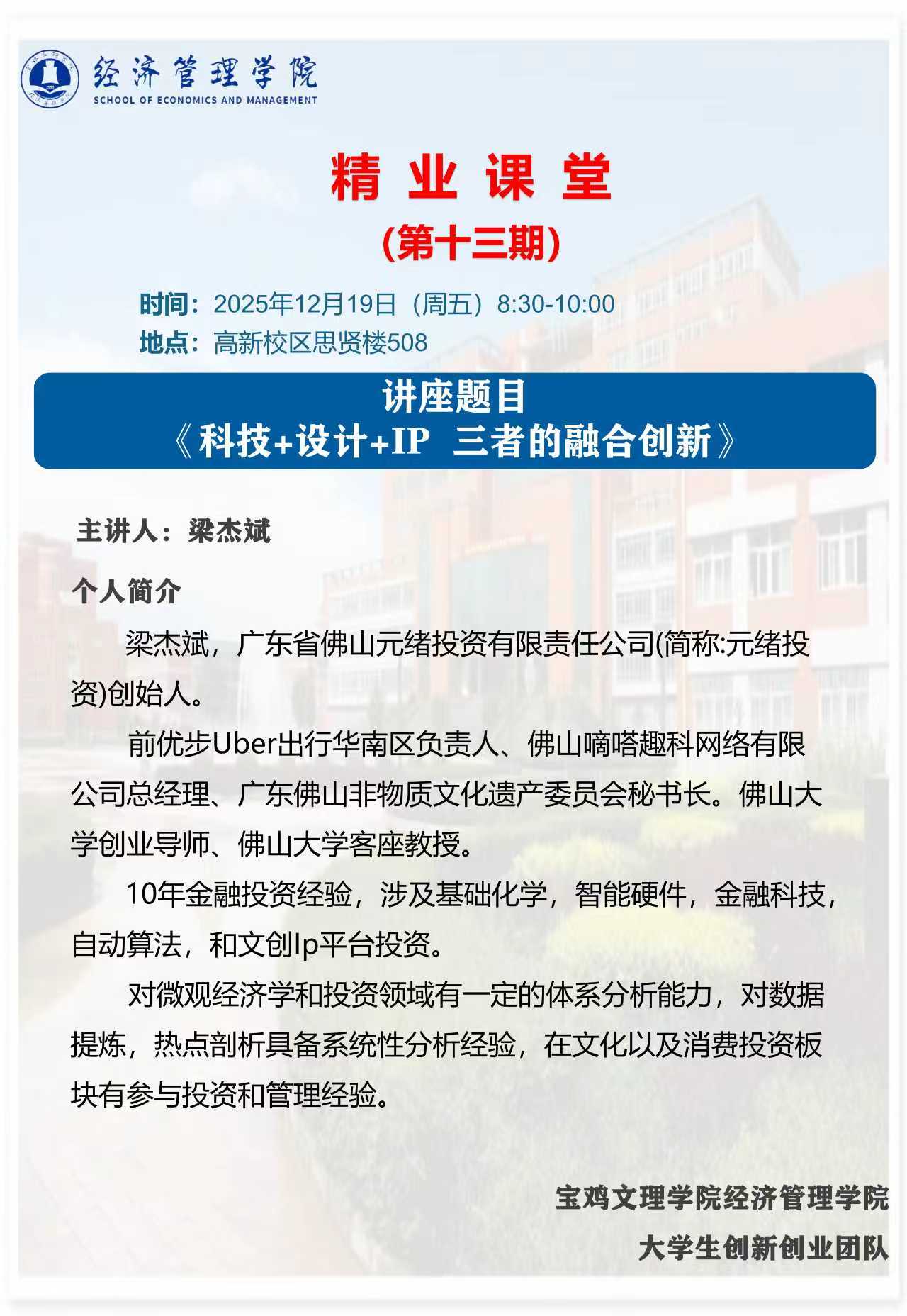 经济管理学院创新创业培训系列报告会公告(二)