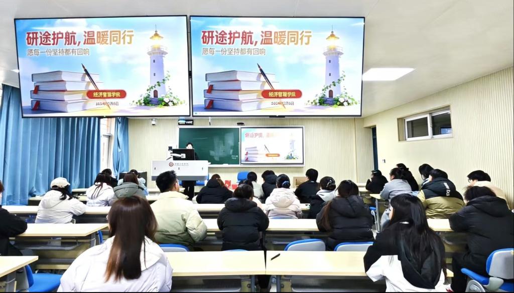 学院党委副书记于媛、相关辅导员及2022级考研学子代表共40人参加活动。(文/付小靖 图/陈景明 审核/邓茹)