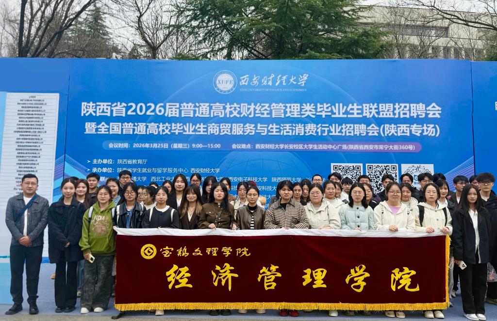 为深入贯彻落实教育部“春季促就业攻坚行动”工作要求,精准对接用人单位需求,切实拓宽2026届毕业生就业渠道,3月25日,经济管理学院精心组织100余名毕业生,前往西安财经大学长安校区参加陕西省财经管理类专场招聘会,以实际行动助力毕业生高质量就业。